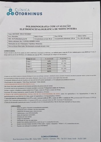 Meu índice de APNEIA/HIPOPNEIA foi de 37,1 eventos/hora de sono, sendo 23 apneias/hora e 14,1 hipopneias/hora.