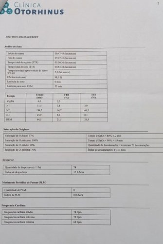 Na noite da última polissonografia, em um período de 5 horas de exame, eu tive 70 dessaturações.