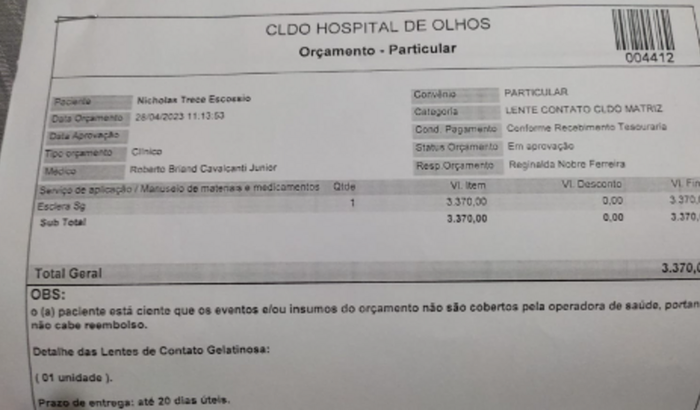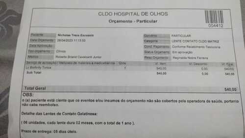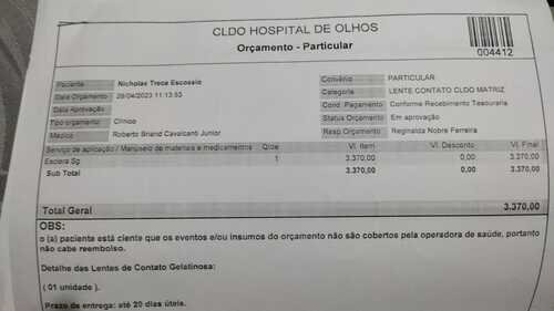 Olá, pessoal. Meu nome é Nicholas e tenho 27 anos. Ano passado mais precisamente em fevereiro de 2022 descobri que tenho uma doença degenerativa na córnea chamada ceratocone. O ceratocone ele é uma deformação da córnea dos olhos que trás problemas na visão. O que acontece é que geralmente é um tipo de doença que pode até parar sua evolução sem nada ser feito, mas , ano passado foi necessário fazer a cirurgia de crosslink para parar o avanço da doença no olho esquerdo e com isso a doença se estabilizou. Eu tenho ceratocone grau 3 e para me ajudar a ver melhor existem lentes especiais chamadas lentes esclerais que ajudam a reduzir esse problema, mas o preço dessas lentes são bem caras. falando em numeros exatos a lente escleral para o olho esquerdo custa 3370 reais e a gelatinosa pro olho direito custa 540 reais (a do olhos direito é uma bem mais em conta por ser apenas grau 1). Eu tenho um valor guardado e estou criando essa vaquinha para ajudar no valor que esta faltando. Segue as imagens comprovando o orçamento feito e a assinatura do setor responsável pela as lentes e número para contato caso alguém deseje confirmar a veracidade.