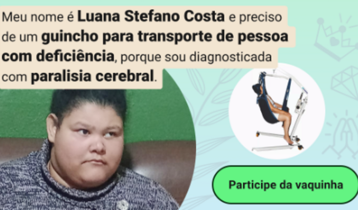 Hoje tenho 18 anos e por causa de uma má formação no cérebro sou diagnosticada com paralisia cerebral. Movimento os braços, posso ver com meus olhos e sentir com o coração. Mas não ando e nem falo.