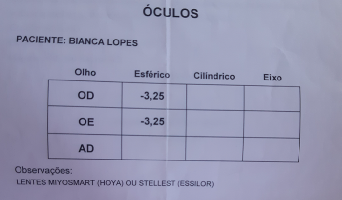 AJUDA PARA COMPRAR ÓCULOS DE TRATAMENTO PARA BIANCA