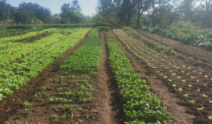 Vou produzir alface crespa, alface americana, couve, salsinha, cebolinha, rúcula, beterraba, manjericão italiano, rabanete, abóbora caipira, quiabo e mais alguns produtos que for possível na horta.