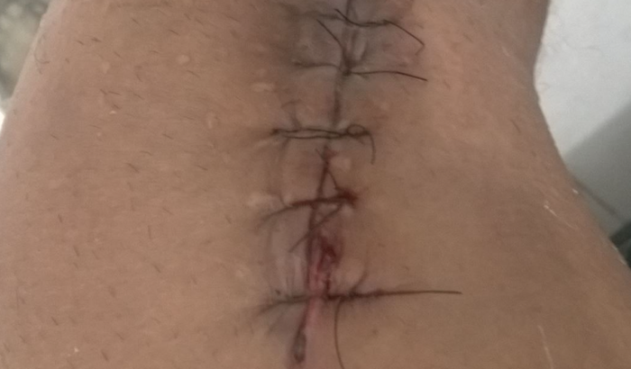 No ano de 2015 fiz uma cirurgia no joelho direito, devido a uma queda que sofri enquanto trabalhava, a operação foi do menisco medial e ligamento colateral lateral.