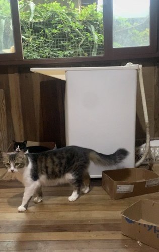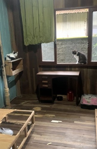 Sua casa é uma casa mista com cozinha e lavanderia em alvenaria, e 3 quartos e sala em madeira, nossa intensão é desmontar esses cômodos em madeira e refazer um quarto de alvenaria, trocar o telhado e anexar um gatil junto a casa, pois alguns desses gatos ainda estão em processo de domesticação, por terem sido criados e capturados no mato, para que esses gatos e cachorros tenham uma chance maior de ser adotados, mas a maior parte deles está disponível para adoção,