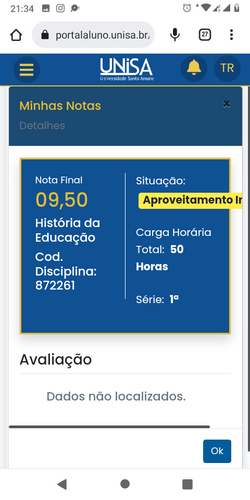 Abaixo anexei alguns prints onde pode-se verificar minhas notas nas disciplinas: