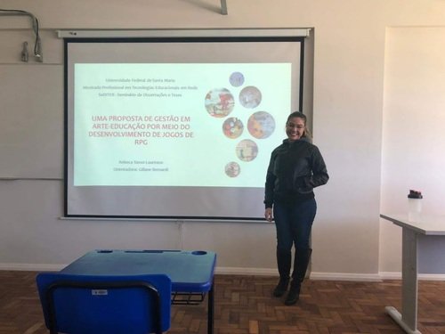 Essa sou eu apresentando minha pesquisa com Jogos de Interpretação de papéis (RPG) na Universidade Federal de Santa Maria durante meu mestrado.