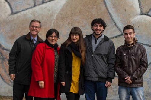 Meu pai Jorge, minha mãe Eliângela, eu, meu marido e meu irmão, em minha formatura na UFSM.
