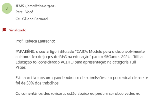 Infelizmente, todos esses acontecimentos geraram atrasos em meu doutorado, além de gastos financeiros elevados em nossa família. Após essas tempestades, estou me reerguendo, com fé em Jesus, participando de eventos acadêmicos, produzindo artigos e atuando em diversos projetos, como o Clube do RPG CAITA, no programa de Enriquecimento de Múltiplas Inteligências da UFSM, e o SOS Comunidades Infância, onde atuo como professora em um centro de referência na periferia de Santa Maria.
