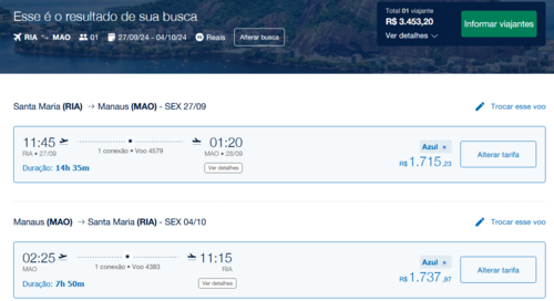 Passagens no Site da Azul com saída de Santa Maria - RS