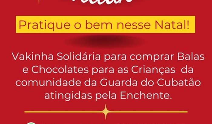 Vakinha para ajudar as crianças do bairro Guarda do Cubatão comprar bala e chocolate