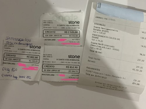 Mas ainda precisamos pagar os custos dela na clínica. Parcelamos tudo para dar tempo de conseguir chegar na meta. (Na foto alguns dos parcelamentos)