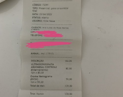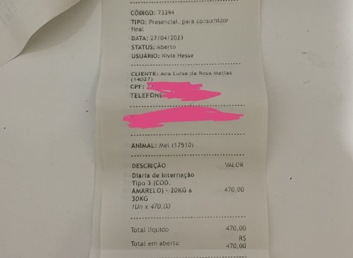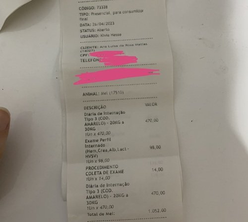 Dia 22/04 Mel precisou fazer uma cirurgia de emergência, pois foi diagnosticada com infecção no útero, piometra. Ela tem 11 anos, considerada idosa já, precisou de mais cuidados, e por isso sua diária na clínica custou R$470. Todo dia foram feitos hemogramas e mais outros exames que os veterinários julgavam necessários para ver a progressão dela.