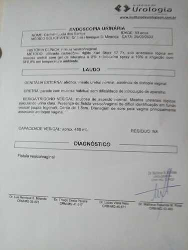 Olá, eu sou Carmen Lúcia dos Santos, sou de Três Corações, tenho 54 anos e venho aqui para contar minha história de forma breve. Em 2019 eu realizei uma cirurgia de histerectomia total e tive uma perfuração da bexiga, o que me levou a um quadro de incontinência urinária continua, do qual eu convivo a 3 anos, fazendo o uso de fraldas constantemente.