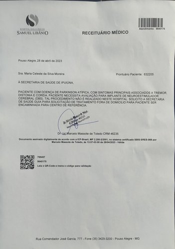 Diagnosticada com Parkinsonismo Atípico a mais ou menos 2 anos. Atualmente faz tratamento com medicamentos, os quais NÃO tem sido muito eficazes.No vídeo há um resumo sobre a situação em que se passa. E um explicativo também sobre o Parkinsonismo atípico e o procedimento (Terapia DBS )que pode ajudá-la a voltar ter qualidade de vida.Esse procedimento (Terapia DBS- seria um Neuroestimulador tipo um ''marcapasso no coração'') tem um custo muito elevado (e a família não tem condições de custear). Pelo SUS há uma fila extensa, que pode demorar até 7 ANOS