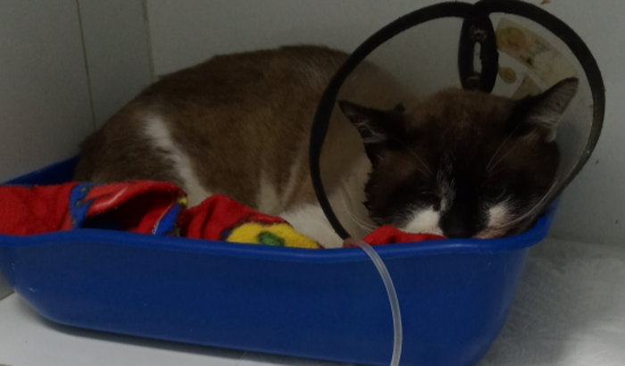 Graças a Deus minha madrinha me ajudou e me levou para o veterinário, porém, terei que fazer uma cirurgia para voltar a comer e viver normal e passar mais alguns dias internado até me recuperar 100%.