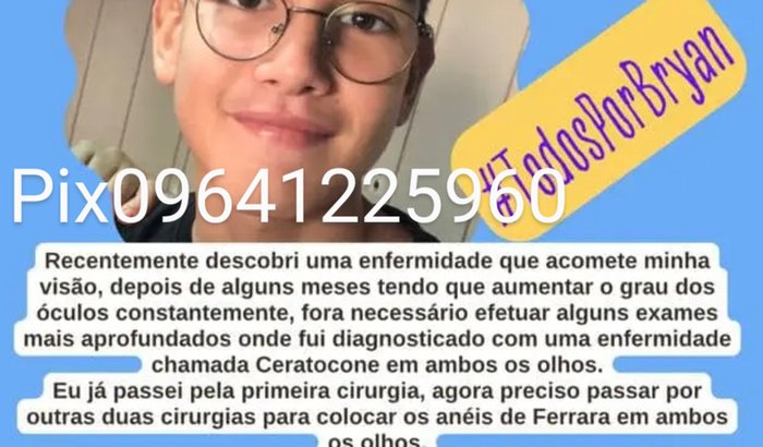 Ajuda para o bryan preciso de cirurgia nos olhos