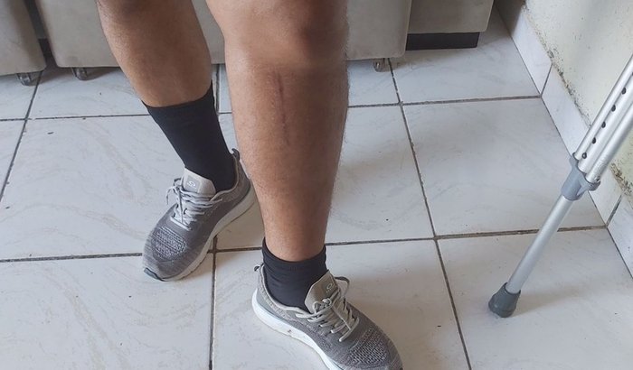 Olá, me chamo carlos tenho 45 anos de idade e eu estou nesse estado terrível que vocês viram na foto eu sofri esse acidente em abril de 2021 eu tive uma fratura muito grave no joelho e por conta disso eu fui afastado