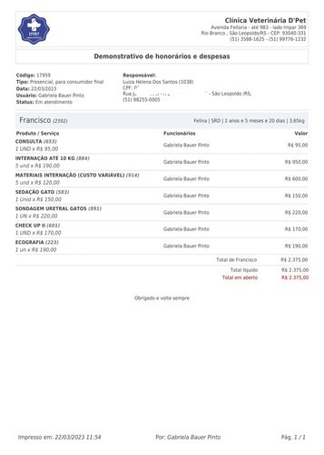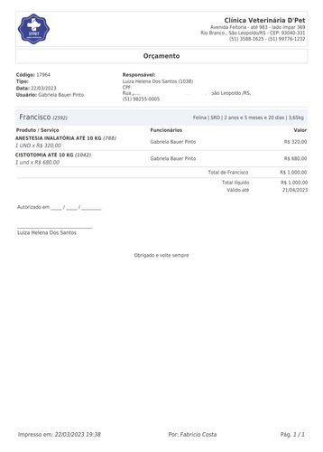 Francisco precisou ser internado para desobstrução da bexiga. Será necessário fazer sondagem e cirurgia para a retirada de 3 pedras na bexiga, portanto, precisará permanecer internado na clínica veterinária para o devido tratamento.