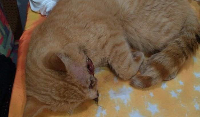 Ontem entrou na minha casa com um buraco enorme no rostinho e bicheira, deitou na mesa e só miava baixinho, pedindo ajuda...😭😭.
