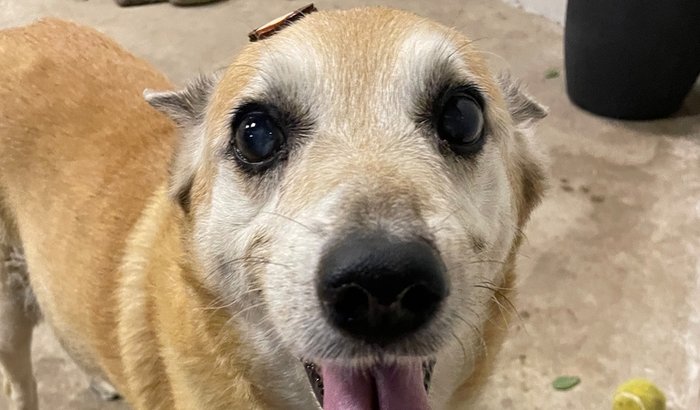 Olá, eu sou a Emily e aqui apresento o Bruck, meu fiel companheiro de 11 anos que está passando por um momento delicado de saúde.