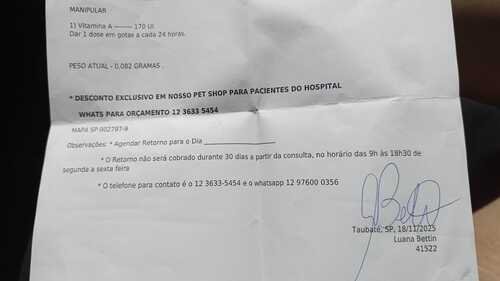 Olá, pessoal. Minha calopsita tem pânico noturno e, no domingo, ele machucou seriamente as duas asas nas grades da gaiola. Eu corri às pressas para o veterinário porque ele perdeu muito sangue e estava à beira de um choque hipovolêmico. No domingo, ele precisou ser internado na clínica para receber os tratamentos necessários e algumas medicações. Na segunda, ele precisou ficar mais um dia na internação. Hoje (18/11), o Ekko saiu da clínica, mas o resultado da radiografia apontou uma infecção grave nos ossos e um risco seríssimo de amputação total das duas asas. Vamos tentar ao máximo tratar a infecção com os remédios indicados pela veterinária, mas se não der resultado, ele precisará de uma cirurgia. O valor que estou pedindo é para custear apenas uma parte do tratamento dele. Qualquer valor que você puder doar vai ajudar muito. A cirurgia que ele fará se os remédios não derem resultado é arriscada e perigosa, e me dói muito imaginá-lo vivendo sem as duas asinhas. Para não chegar à esse ponto, preciso de ajuda para continuar o tratamento dele.