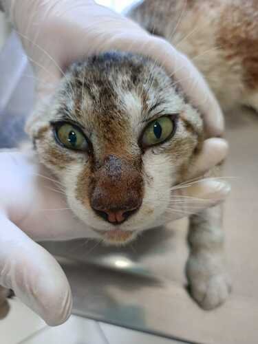 🌡️ Também está com esporotricose, uma infecção séria que exige tratamento longo e cuidadoso.