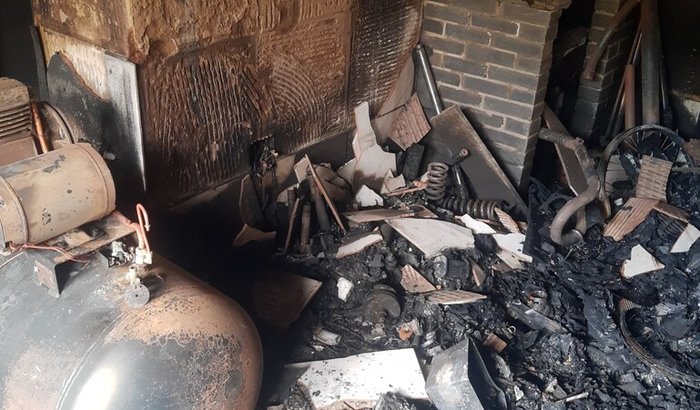 A oficina do nosso amigo Ricardo pegou fogo após uma moto que chegou apenas com o pneu furado por motivos desconhecidos pegou fogo não dando tempo se ser apagado,assim tendo perca total da oficina