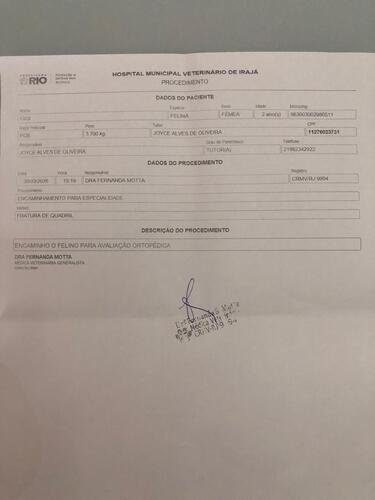 Olá, meu nome é Gigi! Tenho 2 anos e sou uma gatinha muito amorosa. Aconteceu uma coisa muito triste comigo: furei a grade da varanda e caí do quarto andar da minha casinha. Fraturei um osso e estou com muitas dores. Minha mamãe humana está correndo comigo desde quarta-feira, dia 25 de março de 2026, em um hospital público, mas eles não fazem esse tipo de operação que eu preciso. No hospital particular, ficou muito caro. O mais barato que encontraram foi: