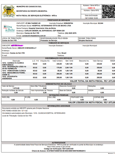 Me chamo Keli, preciso de R$2300,00, pois estamos ajudando uma senhora que cuida de vários animais abandonados. Essa senhorinha da foto é a Violeta ela tinha 21 anos, dona Severina a tutora levou a violeta no veterinário no dia no dia 04/11 com perda de peso drástica e sangue na urina, porém ela não teve dinheiro para fazer os exames levou a Violeta pra casa. No dia 13/11 encontramos a Violeta na rua e recolhemos achando que ela era abandonada, levamos para o hospital veterinário Vitta de Bicho em Caxias do Sul e internamos em seguida dona Severina entrou em contato com a gente pois ela estava em busca da Violeta, que havia saído de casa minutos antes. Como a dona Severina não tinha dinheiro para arcar com as despesas nós pagamos as diárias medicação exames inclusive a eutanásia e a cremação que foi necessária devido ao quadro em que Violeta se encontrava. Ela ficou internada do dia 13/11 até 18/11, foi feito tudo que está a ao nosso alcance pra Violeta melhorar, mas estava com anemia profunda e câncer, rins estavam comprometidos e a função cognitiva dela estava debilitada pra idade avançada. Foi cogitado a transfusão de sangue porém foi descartado depois dos exames. O custo total ficou em R$ 2859,00, R$500,00 eu e meu marido vamos doar. Temos nota de tudo que foi gasto. Se vc quiser doar qualquer quantia é bem vinda para nos ajudar, pois eu e meu marido pagamos todos os valores sozinhos. Mas o que mais importa é que Violeta teve um final de vida digno e sem dor. Depois de 21 anos de vida essa guerreira descansou.