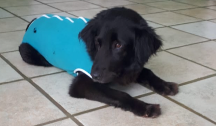 A Soraia acabou cruzando com o Samuka, doguinho que acolhi como lar temporário aqui em casa. Por ela ser um animal de grande porte e já ter 10 anos, a situação dela era de risco, e precisamos fazer o procedimento com urgência. O Samuka também é de grande porte, e a previsão é de que ela teria entre 9 e 12 filhotes!