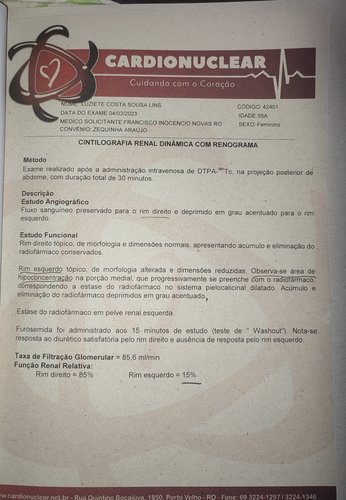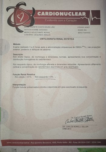 Será necessário fazer a remoção do rim que praticamente não está funcionando.