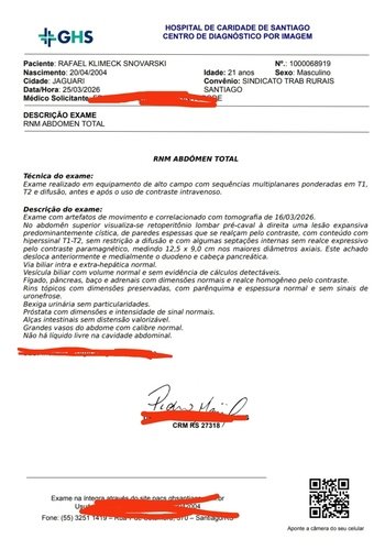 Foram meses muito difíceis, mas, graças a Deus, o tratamento teve resposta e meus exames melhoraram. Porém, a luta ainda não acabou. Nos exames mais recentes, ainda restaram duas massas, uma no abdome, medindo 12,5 x 9,0 cm, e outra no pulmão, de 3,5 x 2,8 cm. Os médicos foram claros: agora preciso fazer uma cirurgia urgente, a linfadenectomia retroperitoneal, que é a etapa final para remover o que restou e me dar uma chance real de cura.