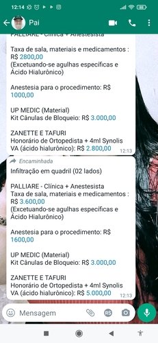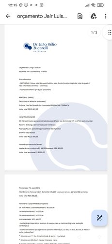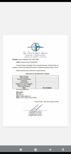 , tá no valor de 144 mil reais Mais segundo o médico que tá tratando da doença do meu pai, existe um tratamento mais barato que é a infiltração, p qual o valor total custa 22.800 mais mesmo assim meu pai nao tem condições de pagar e nem nós não temos como pagar ,por isso nós estamos pedindo a sua colaboração, em qualquer valor que vc poder ajudar ,para que meu pai possa voltar a trabalhar, desde já agradeço a todos, e que Deus abençoe vcs