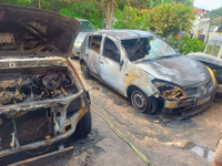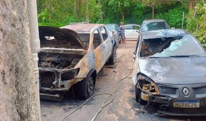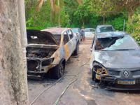Com o fogo, dois carros foram totalmente destruídos e um terceiro veículo foi parcialmente danificado.