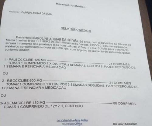 Parte da nossa arrecadação será voltada a apoiar o tratamento da nossa amiga Carolini Aguiar da Silva (moradora da casa), que foi diagnosticada com câncer e está tendo custos altos com remédios e transporte para prosseguir com o tratamento. Abaixo, alguns dos remédios que ela precisa.