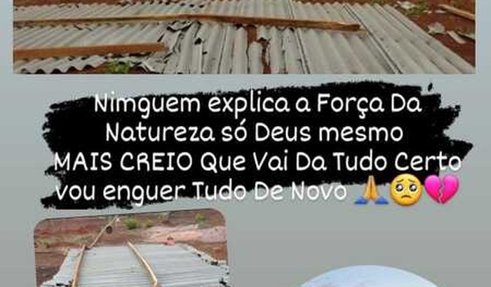 Olá , estou aqui para contar a vocês o por que estou neste app , no dia 18/08/2022 um forte vendaval com ventos 140 km/Ph , atingiu a cidade de Rondonópolis MT , e consequentemente o loteamento Alfredo de castro 02 , loteamento novo doado pela habitação , e por acaso ou destino minha casa que estava quase pronta foi atingida , arrancou todo meu telhado, estou trabalhando pra fazer tudo novamente.