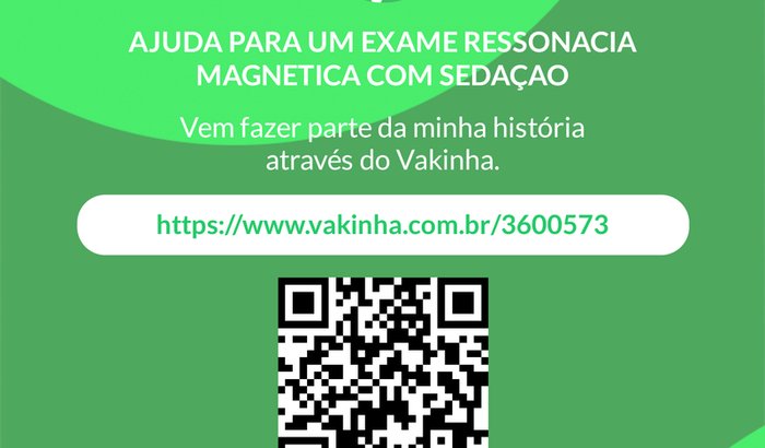 preciso fazer esse exame que custa em media 1.500 reais ...quem puder me ajudar obrigado. RESSONANCIA MAGNETICA COM SEDAÇAO.meu pix email..tatianagraziele50@gmail.com