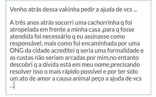 AVISO LEGAL: O texto e as imagens incluídos nessa página são de única e exclusiva responsabilidade do criador da vaquinha e não representam a opinião ou endosso da plataforma Vakinha.