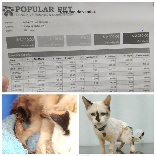 Ainda não temos previsão de alta da branquinha, e hoje os gastos na clínica estão em 2,260,00 em aberto. E ela ainda precisará fazer a cirurgia que não sabemos ainda o valor.