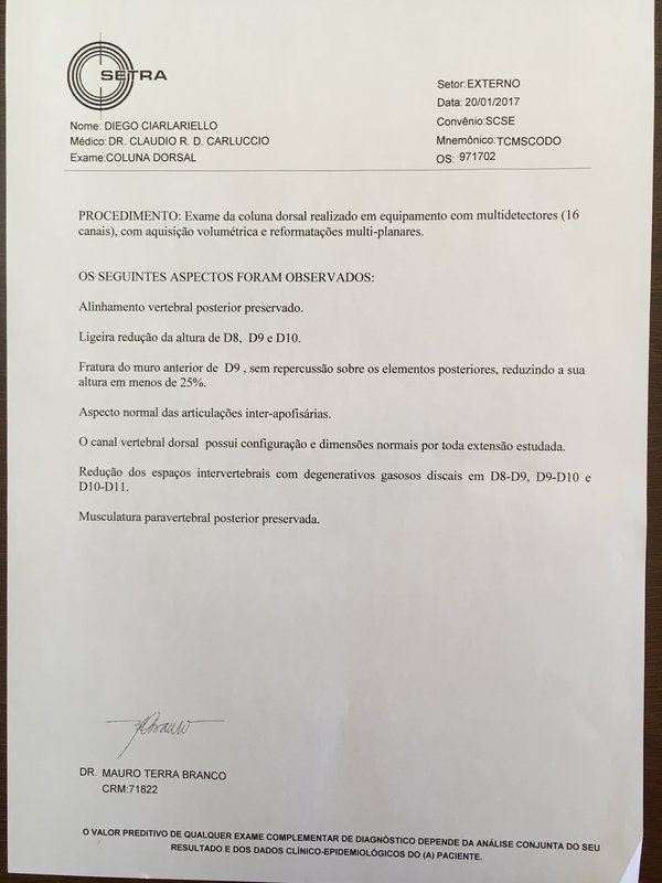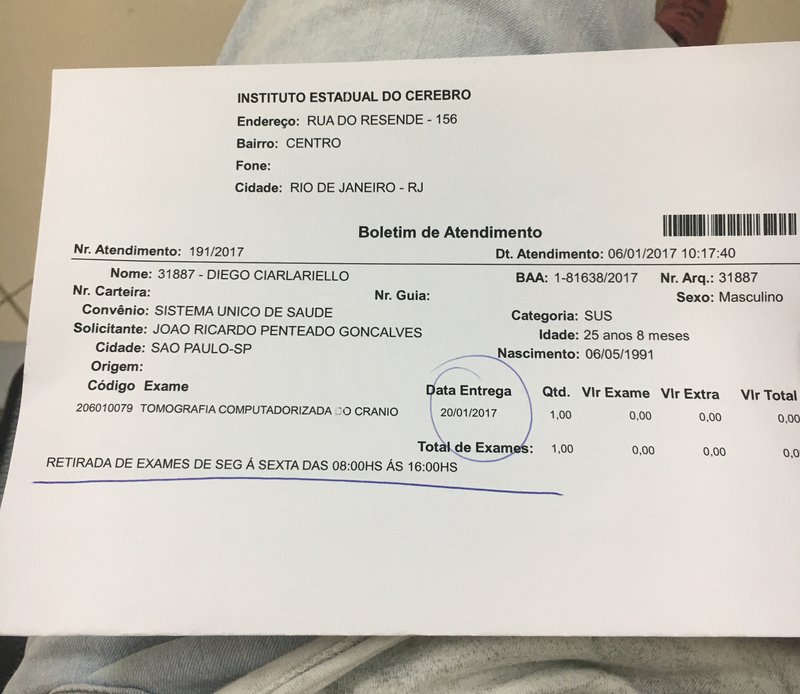 exame feito no Rio de Janeiro, quando soube do coágulo na cabeça