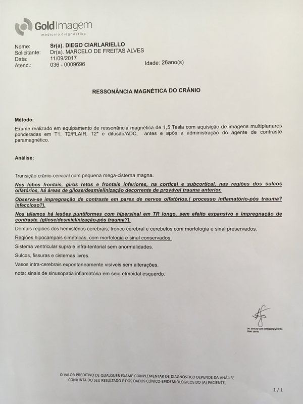 diagnóstico irreverssível da perda do olfato/paladar pós traumatismo craniano