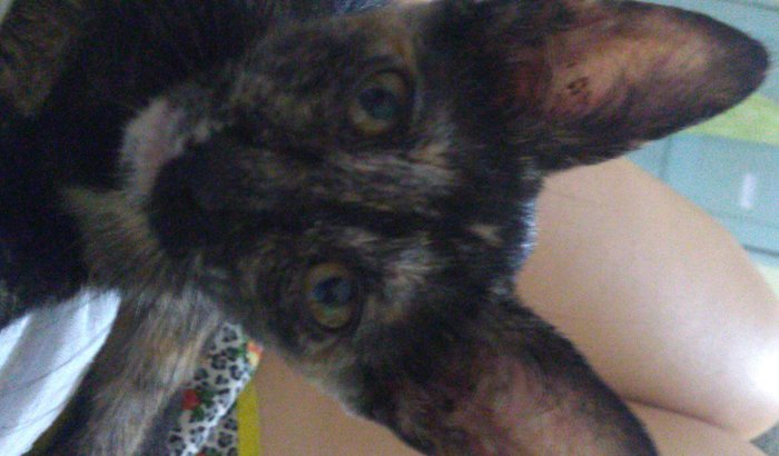 Eu encontrei essa gatinha segunda feira(07 /01) na represa, tem aproximadamente 2 meses e me intrigou pq ela estava EXTREMAMENTE magra, como da pra ver na foto. Ai qd trouxe ela dei um banho coloquei ração pra ela e ela logo foi comendo, ai percebi q ela nao sabia usar a caixinha de jeito nenhum, pq ela fazia xixi e cocô na cama toda vez, e queria dormir perto da gente, ai tive q prender ela pra ela nao fazer mais na cama, ai a partir disso ela começou a nao comer mais nada nem beber agua, nao ia no banheiro direito, e nao fazia mais NADA, ficava o dia inteiro deitadinha como na foto e nao levantada pra nada, e ela não esboça reação nenhuma pras coisas, nao comia nenhum tipo de ração, nem sachezinho pra filhotes, ai entrei em desespero e dei um pouco de leite sem lactose pra ela, q foi a unica coisa que ela comeu, mas não muito tb. ai percebi q estava saindo uma secreção amarelada do anus dela que parecia estar todo ferido também, e quando fui limpar ela esboçou mt dor, miava desesperadamente. eu levei ela na veterinaria na terça e ela deu um vermifugo pra ela e ela nao disse nada mais, so pra comprar uma ração pra filhotes (que ela nao comeu nenhum grao do pacote).