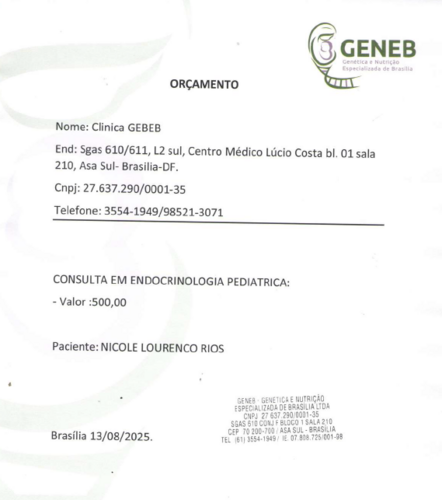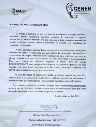 Consultas com as médicas especialistas em Brasília – incluindo nutricionista com experiência em doenças raras, que ajusta mensalmente a dieta cetogênica de Nicole;