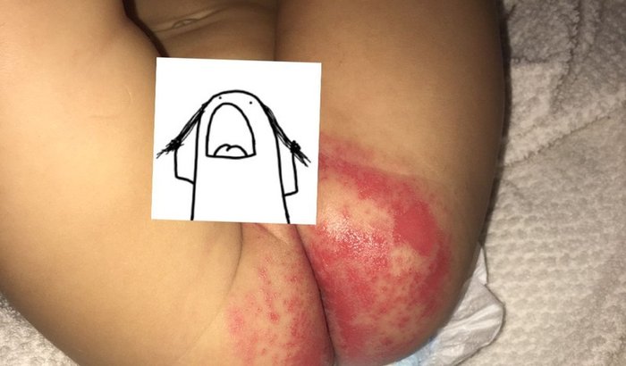Essa é a Maitê após usar uma fralda que a creche colocou, mesmo avisando, acabou dando uma reação. Eu acabei de ser desligada da minha ex empresa e não consigo arcar com tudo.