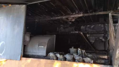 Na última noite, devido ao calor, o trailer pegou fogo a partir da geladeira, dando perda total em tudo o que tinha dentro e no trailer.