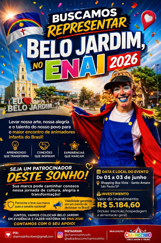 Fomos convidados a participar do ENAI 2026 – Encontro Nacional de Animadores Infantis do Brasil, que acontecerá de 01 a 03 de junho, na cidade de Santo Amaro, em São Paulo. Um evento que reúne os melhores profissionais do país, onde conhecimento, experiências e sonhos se encontram.