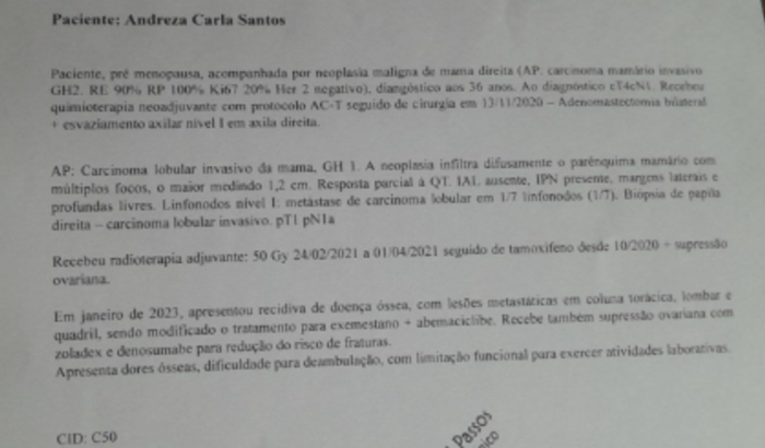 No final de 2019, recebi o diagnóstico de câncer de mama. Em 2020, enfrentei um intenso tratamento: fiz quimioterapia, passei por uma cirurgia complexa que exigiu a retirada total das duas mamas, e tive sérias complicações no pós-operatório.
