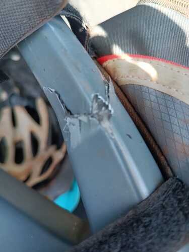 A sua bicicleta foi seriamente danificada – o quadro quebrou ao meio, o garfo e os pneus ficaram comprometidos, perdeu a bermuda e seu celular foi destruído. O motorista da moto também sofreu alguns danos.