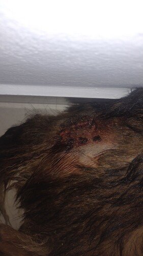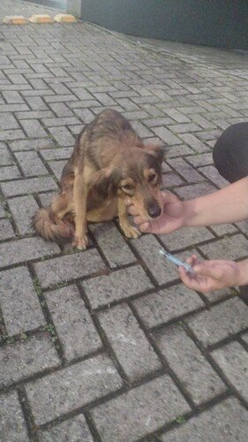 Junto aos meus colegas nós organizamos e levamos ela no veterinário, pagamos juntos uma consulta de emergência e fizemos uma vaquinha interna para custear os remédios. O fato é que eu adotei a Meg, cachorrinha meiga e carinhosa, porém, muito debilitada e como já possuo uma gatinha com dermatite e já temos gastos com a medicação dela vimos como alternativa a criação desta vakinha, com única e exclusivamente a ideia de cuidar da Meg, deixá-la 100% e dar a ela a vida que merece, aparentemente o ferimento foi uma mordida, porém, ela tinha uma coleira surrada quando foi resgatada, indicando possivelmente algum dono negligente. Segue abaixo a foto do dia do ferimento: