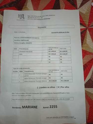 Olá. Me chamo Fernanda, sou filha da Ester Rodrigues. Venho atrás dessa msg te pedir uma ajuda pra minha mãe que no momento estamos passando por momentos difícil. Vou dar pequena resumida no caso da minha mãe. Ela já vem muito e muitos anos tratando das vista sempre no particular na ********", mais acontece ela acabou perdendo uma vista, corremos atrás de outro especialista em Cassilândia porém no decorrer do anos caso foi se agravando mais , nois sempre pedindo encaminhamento pra que ela podesse operar eles sempre se negando disse que caso era só tratamento. agr ela se encontra com apenas 50% da vista precisa de passa por uma cirurgia com estrema urgência. Dr. Chegou dar encaminhamento mais como já se agravou ele não quis nem tenta fazer a cirurgia. Então corremos atrás de um recurso em três lagoa, em uma clínica muito recomendada, mais devido a gravidade que se encontra as vista na clínica não tinha equipamento necessário para realizar a cirugia. Então fomos pra são José rio preto, atrás de novo recurso. Lá eles tem todos equipamentos necessários, porém o custo dobrou de valor. Teve a consulta que foi 300, teve os exames que ficou no valor de 840 e tem a cirugia que fica no valor de 8000. Fora as viagens que tamos tento que fazer.